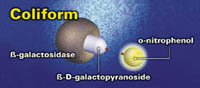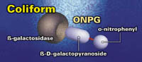 当大肠菌群在 Colilert 250 中生长时,其使用 β-半乳糖苷酶分解代谢 ONPG,并使样品从无色变为黄色。